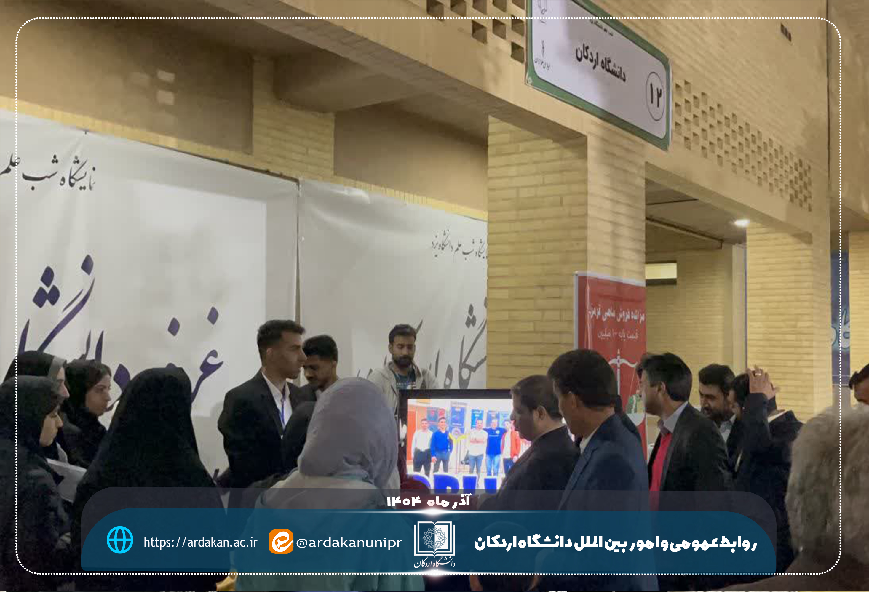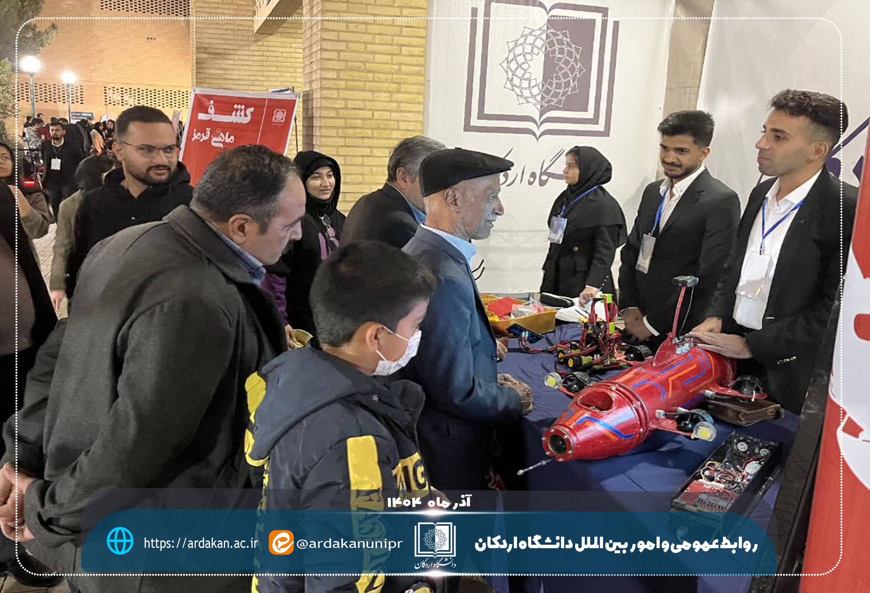 در این آیین علمی و پژوهشی که با حضور دانشگاه‌ها و مجموعه‌های علمی استان یزد برگزار شد، غرفه دانشگاه اردکان با استقبال خوب و پرشور بازدیدکنندگان روبه‌رو شد و مورد توجه اقشار مختلف جامعه قرار گرفت. بازدیدکنندگان، از نزدیک با دستاوردها، ایده‌ها و پروژه‌های اجرایی‌شده توسط دانشجویان دانشگاه اردکان آشنا شدند.