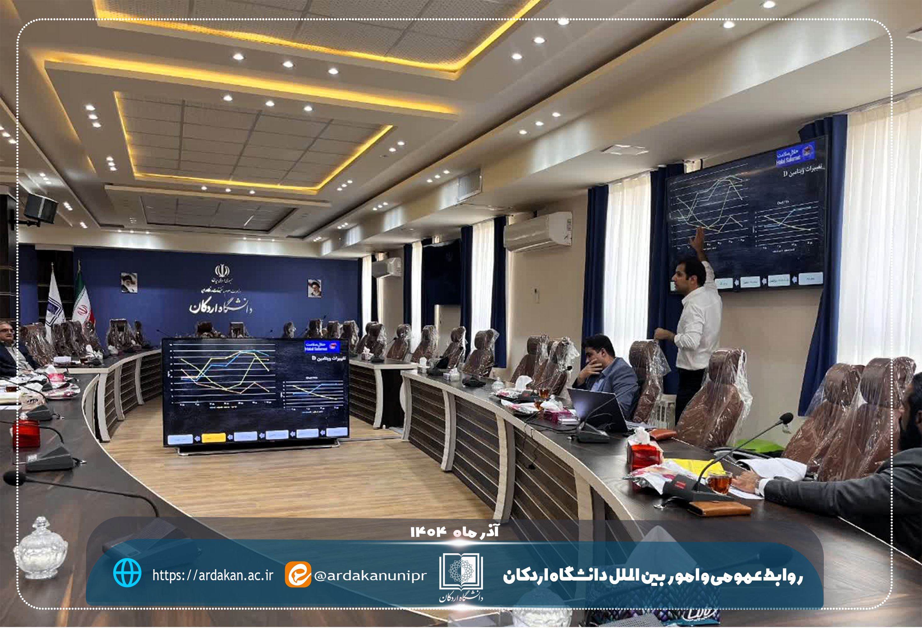 این جلسه با حضور دکتر مجید صادقی‌نیا، معاون آموزشی و پژوهشی دانشگاه اردکان و جمعی از اعضای هیأت علمی و متخصصان حوزه دامپزشکی برگزار شد. همچنین هیئت داوران مشتمل بر خانم دکتر قربانی، خانم دکتر عبیری و خانم دکتر حدادی‌پورزرندی به بررسی علمی و تخصصی این طرح پرداختند. نشست در آمفی‌تئاتر دانشکده پیرا دامپزشکی دانشگاه اردکان و به مدت حدود دو ساعت برگزار شد.