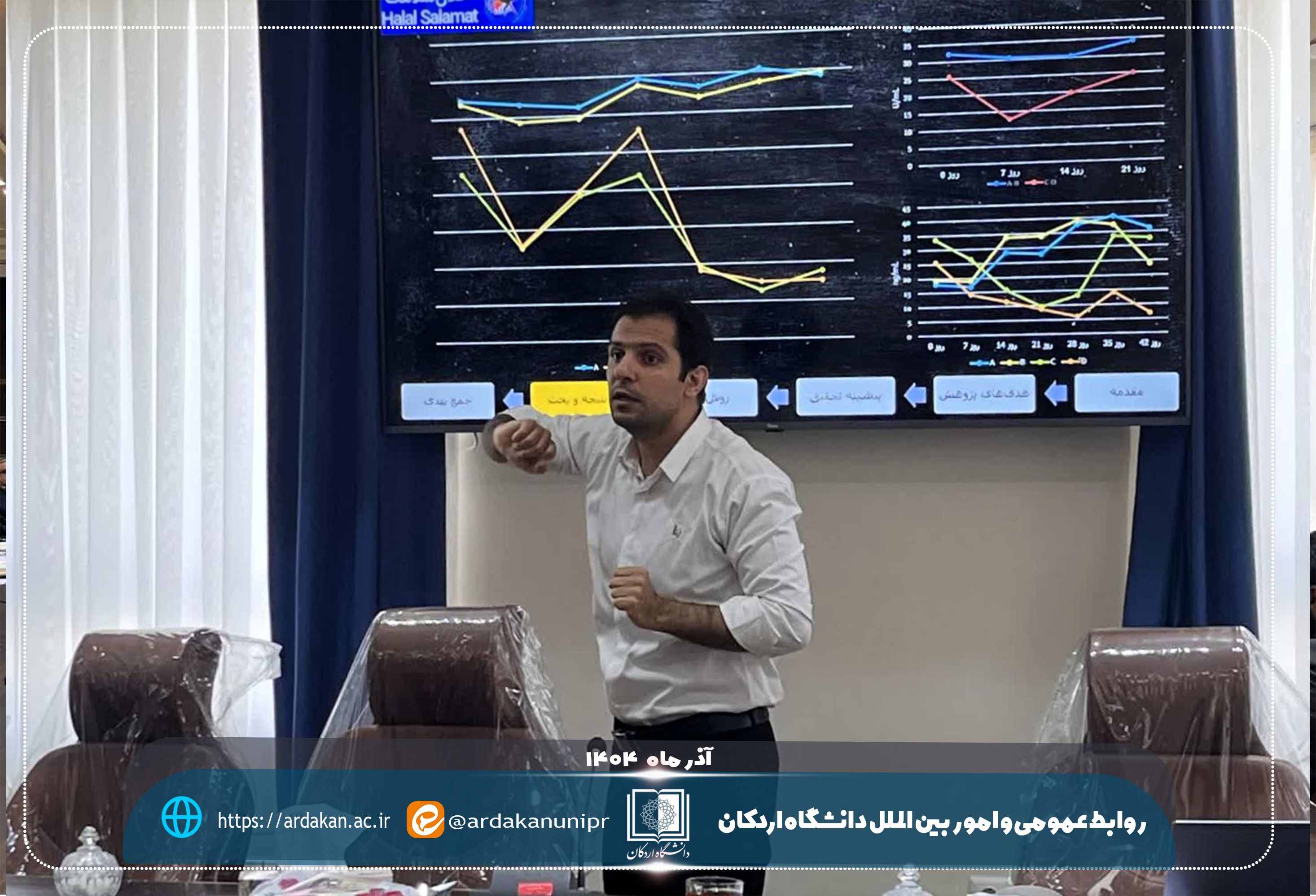 همزمان با هفته پژوهش و در راستای حمایت دانشگاه اردکان از توسعه فناوری‌های نوین در حوزه علوم دام و فرآورده‌های زیستی، امروز دهم آذرماه ۱۴۰۴ نخستین نخبه جایگزین خدمت وظیفه مستقر در شرکت حلال سلامت افق برتر (از واحدهای فناور مرکز رشد دانشگاه اردکان) با موفقیت از طرح پژوهشی خود دفاع کرد.